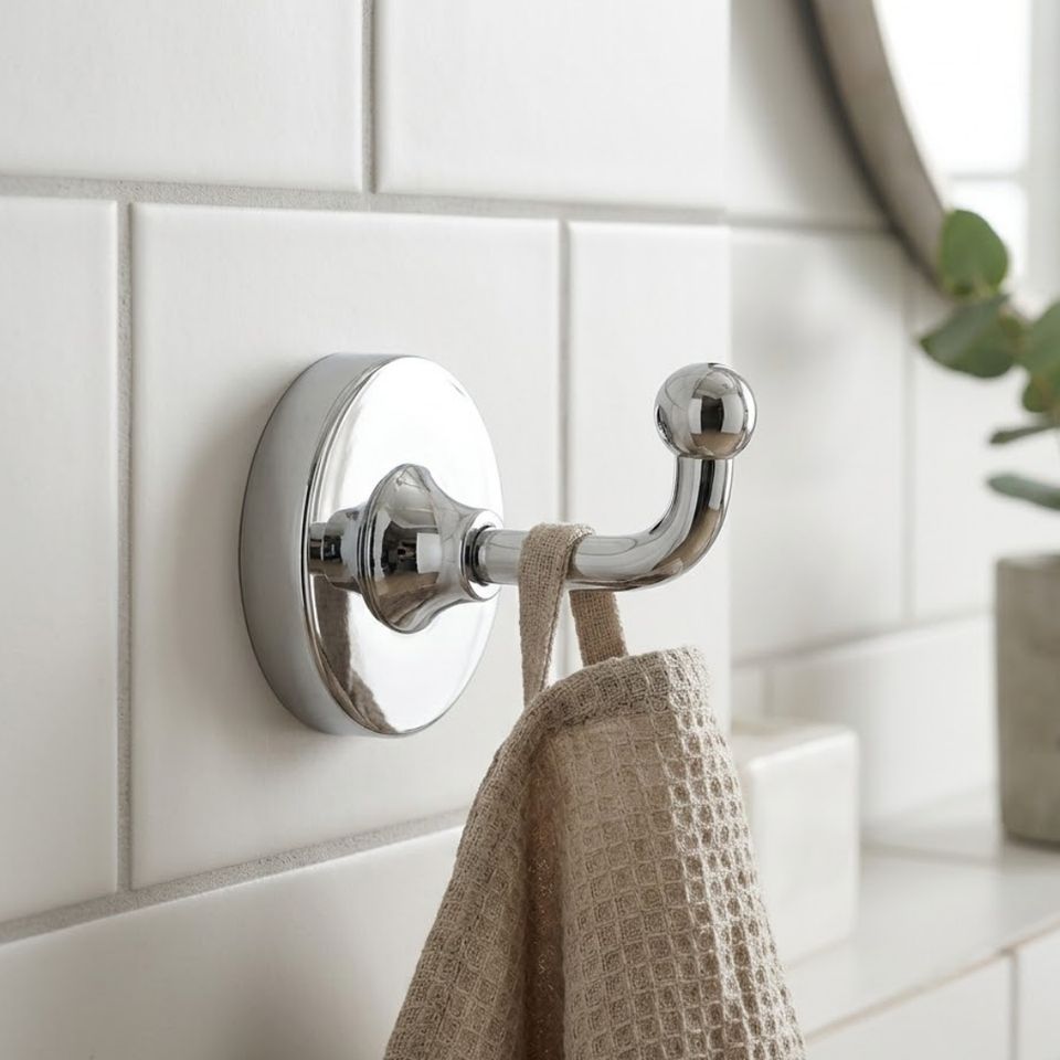 Crochet mural classique multifonctionnel en laiton chromé durable pour peignoir, manteau, serviette, salle de bain, WC décoratif
