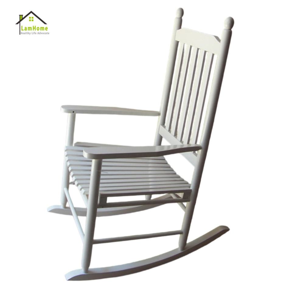 Fauteuil à bascule classique à dossier à lattes, en bois massif blanc, avec accoudoirs, confortable pour la maison, idéal pour les fêtes et les loisirs