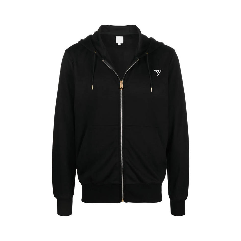 Classique solide noir couleur pur coton hommes à capuche fermeture éclair pull printemps automne ample confortable décontracté polyvalent à capuche