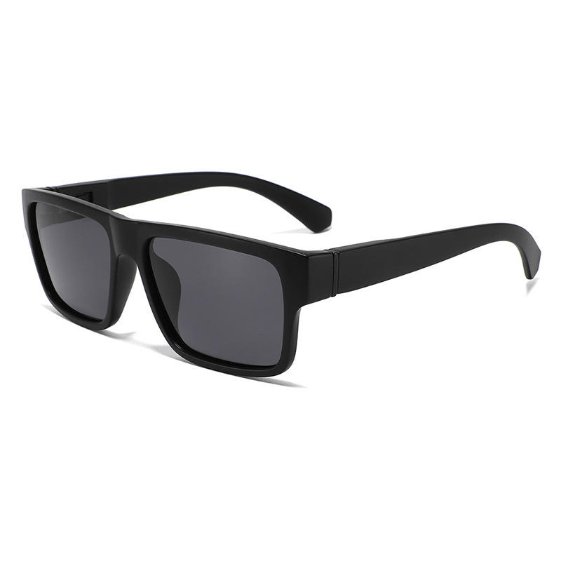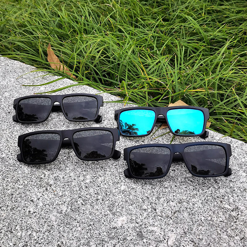 Lunettes de soleil carrées classiques pour hommes, polarisées, protection UV400, monture noire en PC, verres TAC, protection solaire, pour la pêche