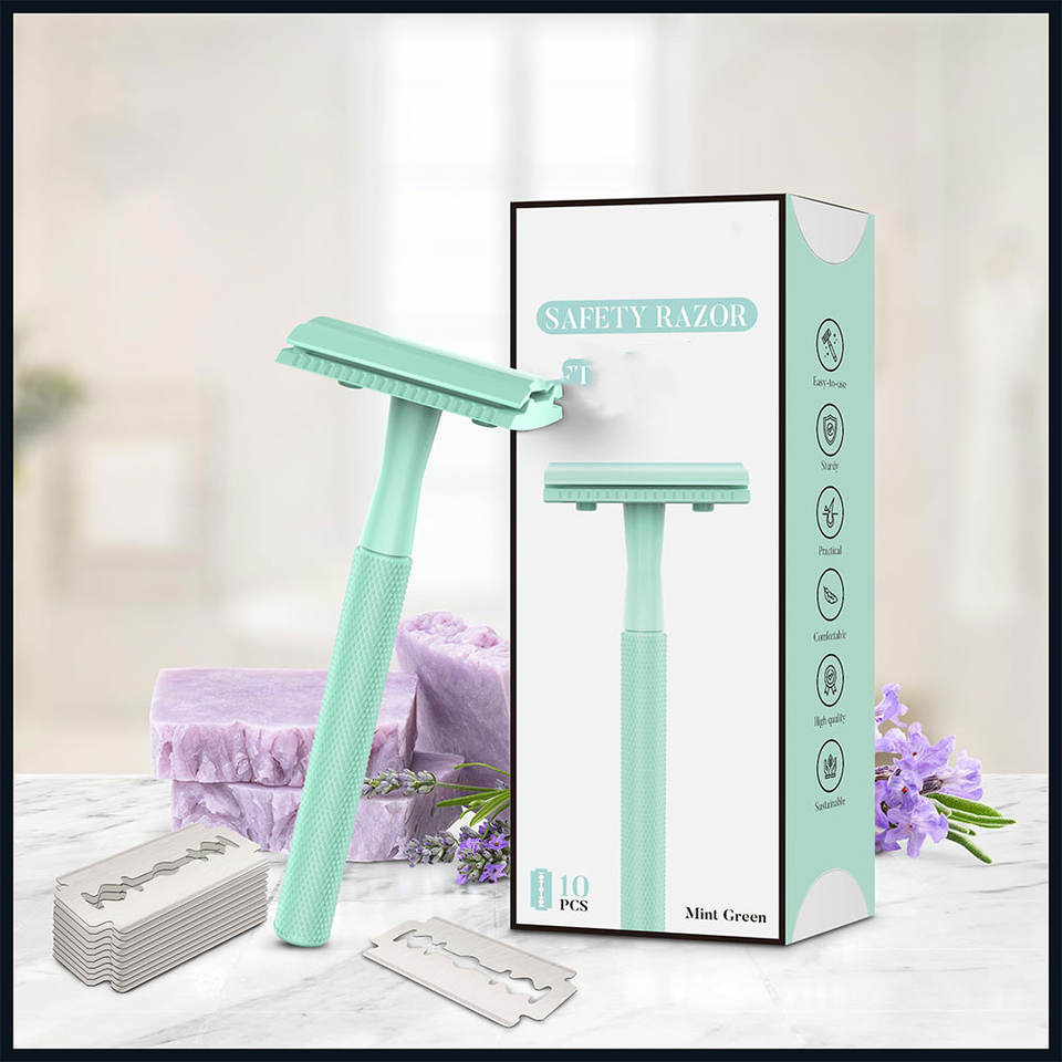 Rasoir de sécurité classique à double tranchant en acier inoxydable avec poignée texturée Utilisation humide de qualité personnelle pour le visage et le corps