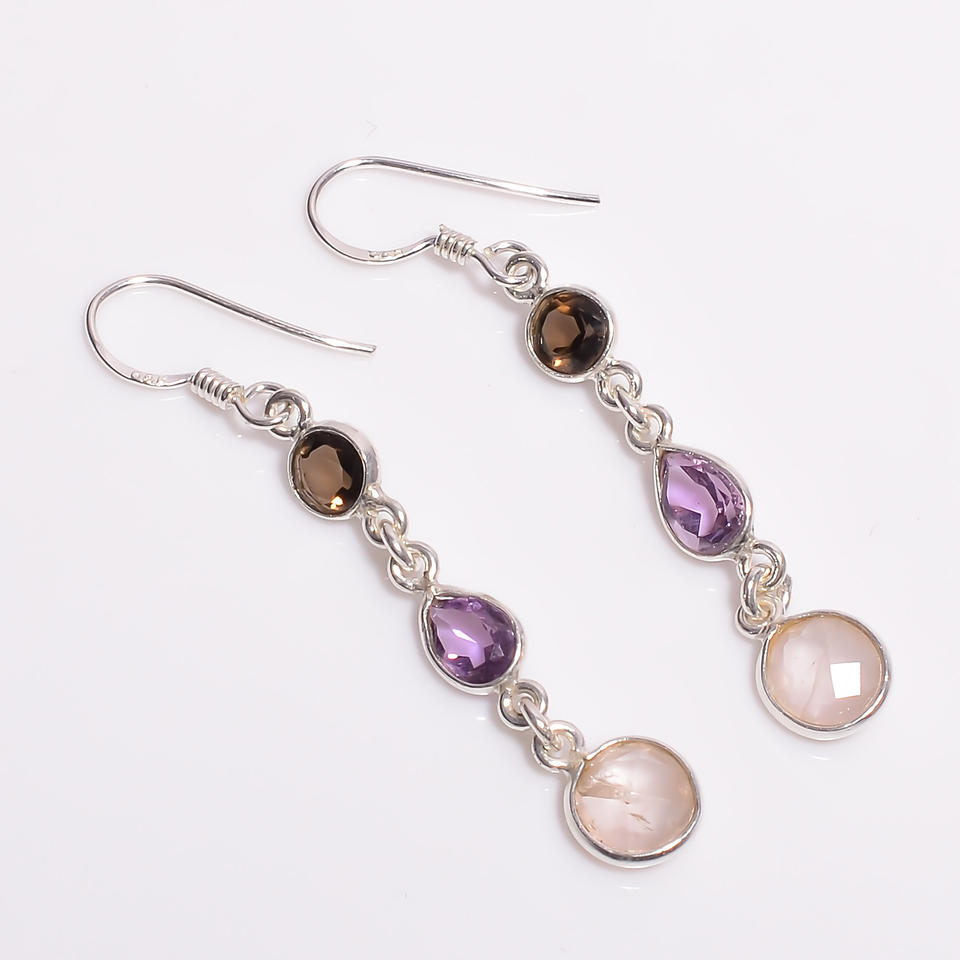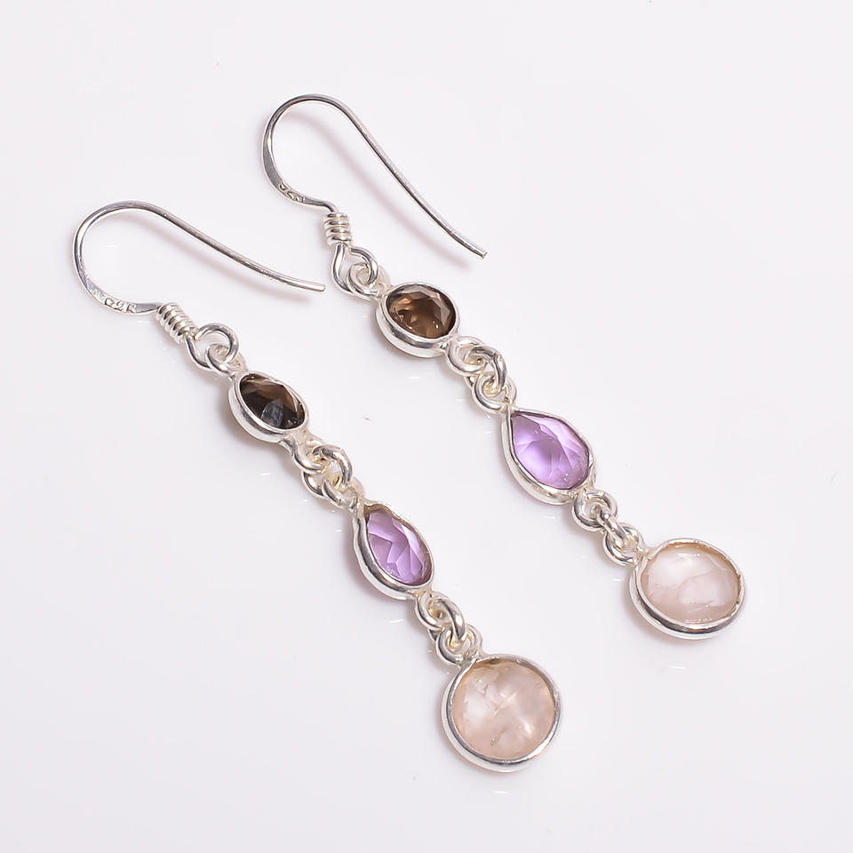 Style classique 925 boucles d'oreilles pendantes en argent Sterling élégant mixte coupe pierres précieuses élégant bijoux fins