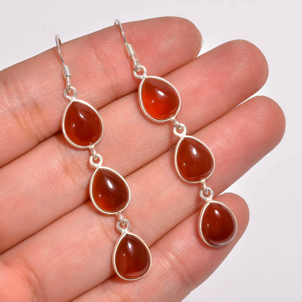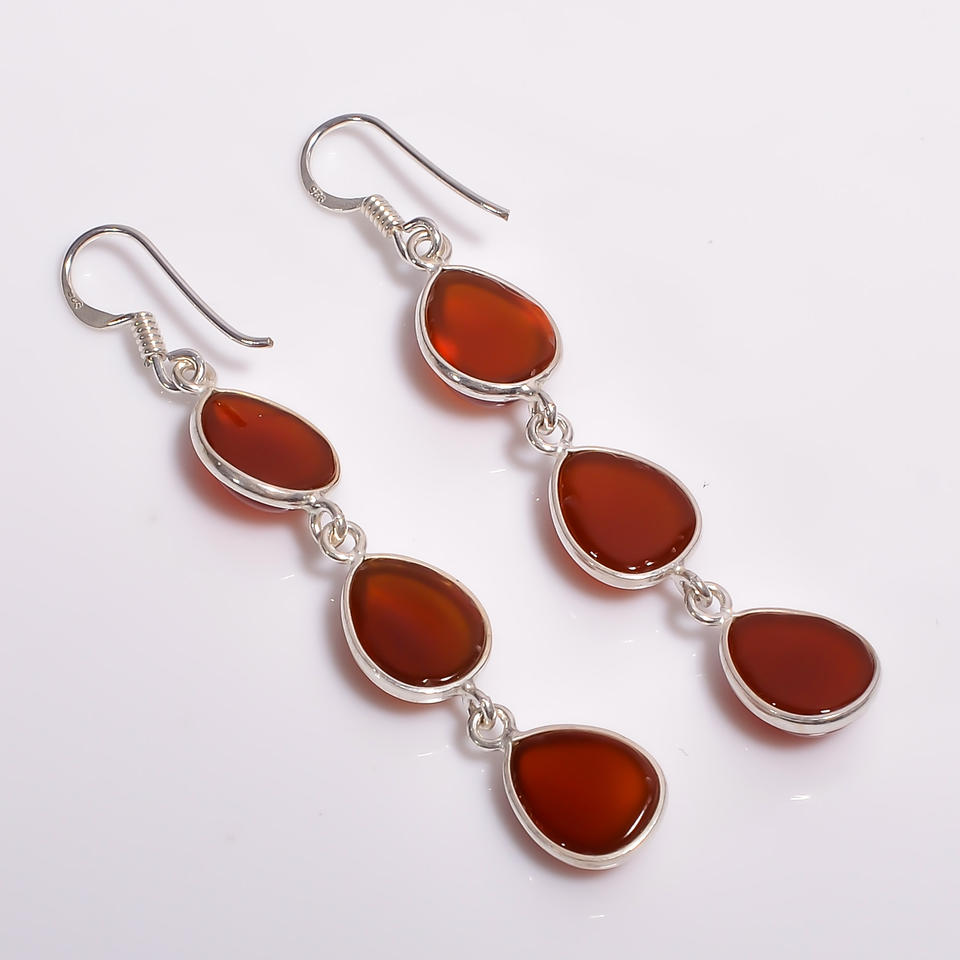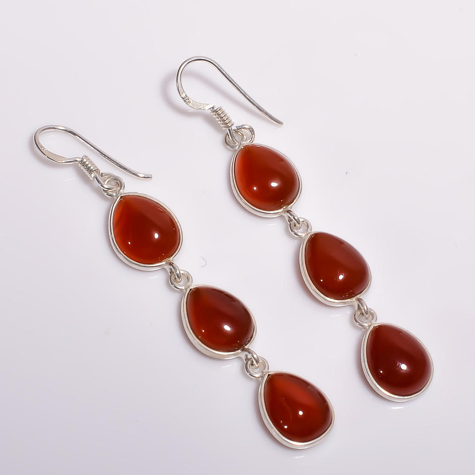 Boucles d'oreilles pendantes en argent sterling 925 de style classique Bijoux fins avec pierre précieuse d'onyx rouge