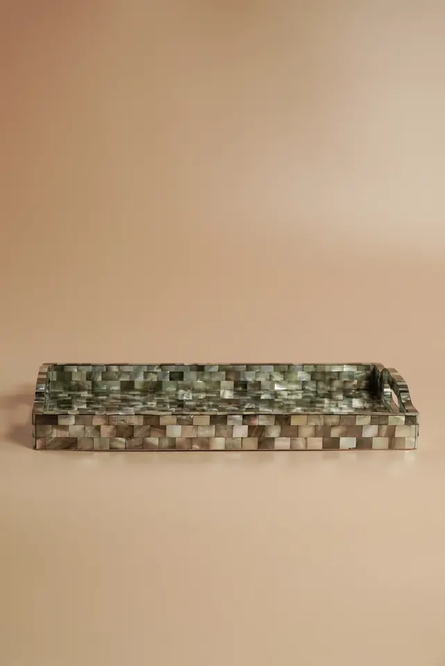 Plateau de service en nacre de style classique avec poignée, plateau en mosaïque de fruits pour la décoration intérieure et extérieure