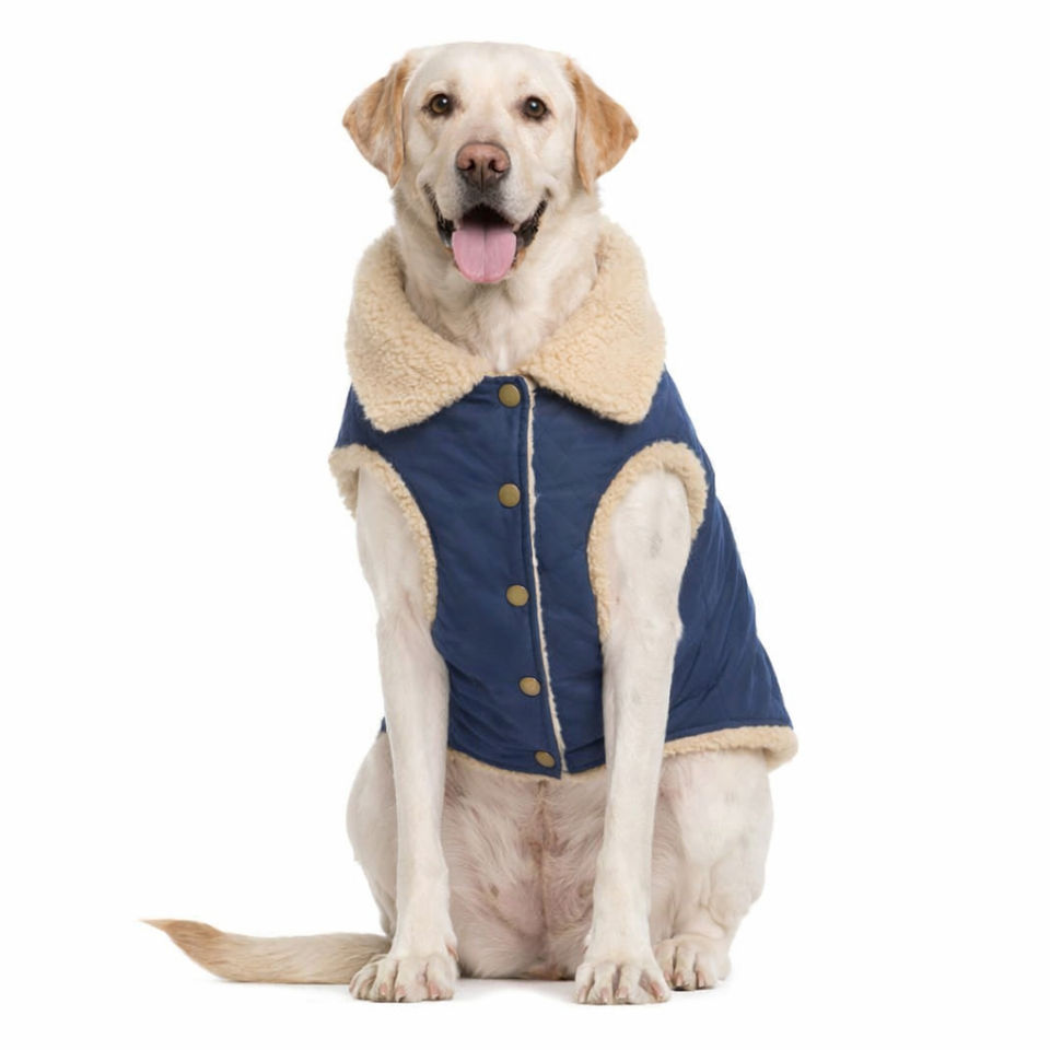 Vêtements pour animaux de compagnie de style classique, vente directe, sans manches, doublure en sherpa, fermeture à boutons