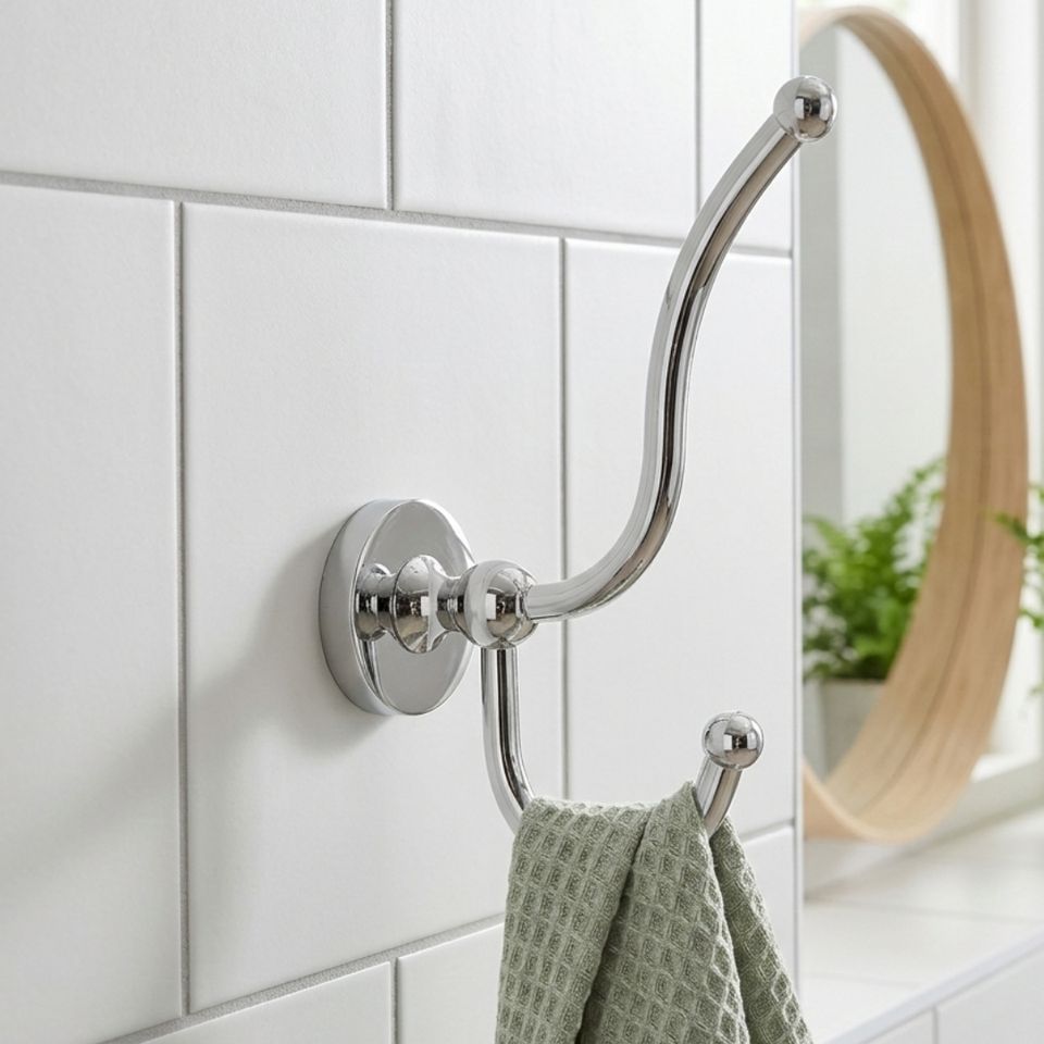 Crochet mural décoratif double en laiton de style moderne pour serviettes et vêtements de salle de bain, idéal pour l'organisation des peignoirs