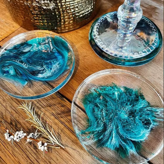 Style classique fait à la main écologique carré résine Art sous-verres ensemble pour Table à manger mariage et fête utiliser tasse à thé