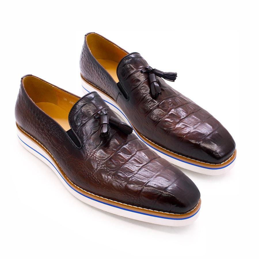 Style classique fait à la main en cuir véritable mocassins à enfiler chaussures pour hommes gland mocassins pompes chaussures hommes bureau travail robe chaussures