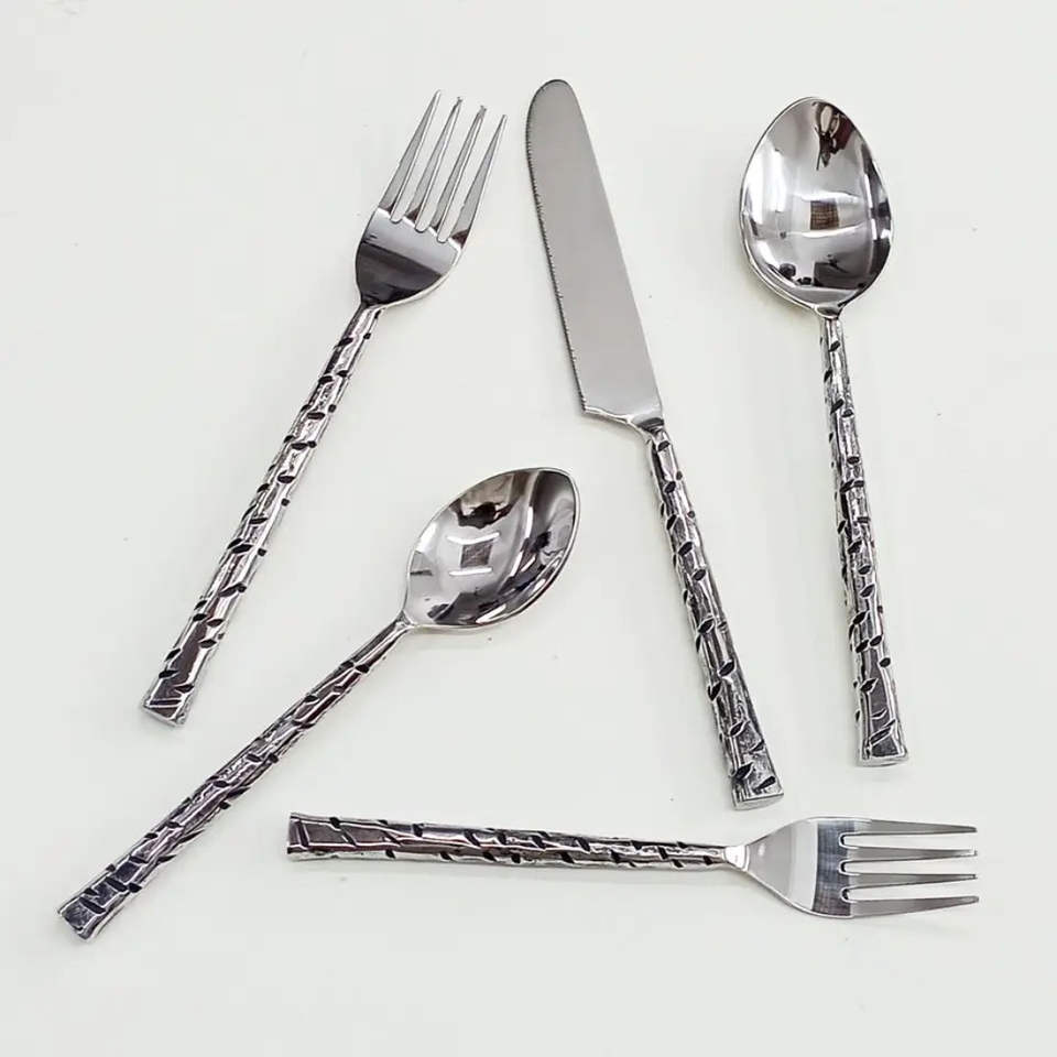 Ensemble de couverts en métal de style classique avec finition élégante, adapté aux dîners formels, aux tables d'hôtels et de restaurants