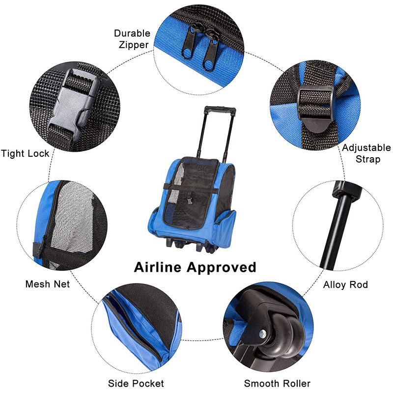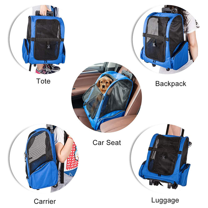 Style classique Pet Voyage Roulant Sac À Dos Solide Oxford Matériel Fermeture À Glissière Respirant Pliable Caisse Chien Transporteur Roues