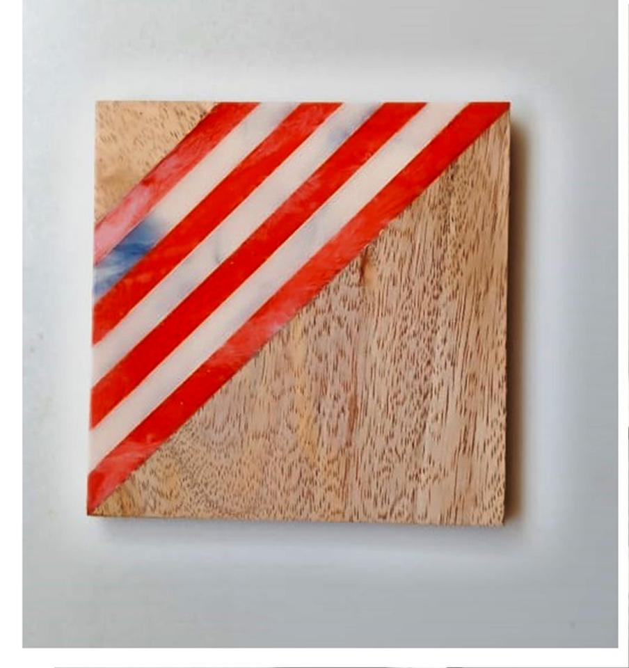 Bone And Brass Inlay Wood Coaster