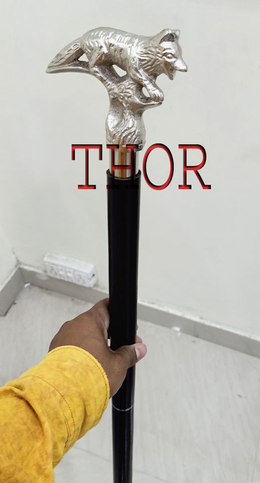 Canne de marche en bois noir avec poignée en forme de visage de renard argenté de style classique, cannes de marche pliantes solides, bâton antidérapant