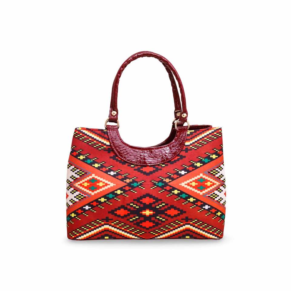 Classic Stylish Maroon Casual Tote Handbag P56124 Minimalist Half Moon Geometric Pattern Open Closure PU Leather for Beach Use