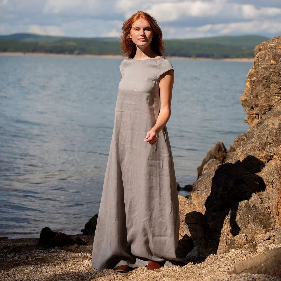 Product Name:Linen Gray Maxi Dress