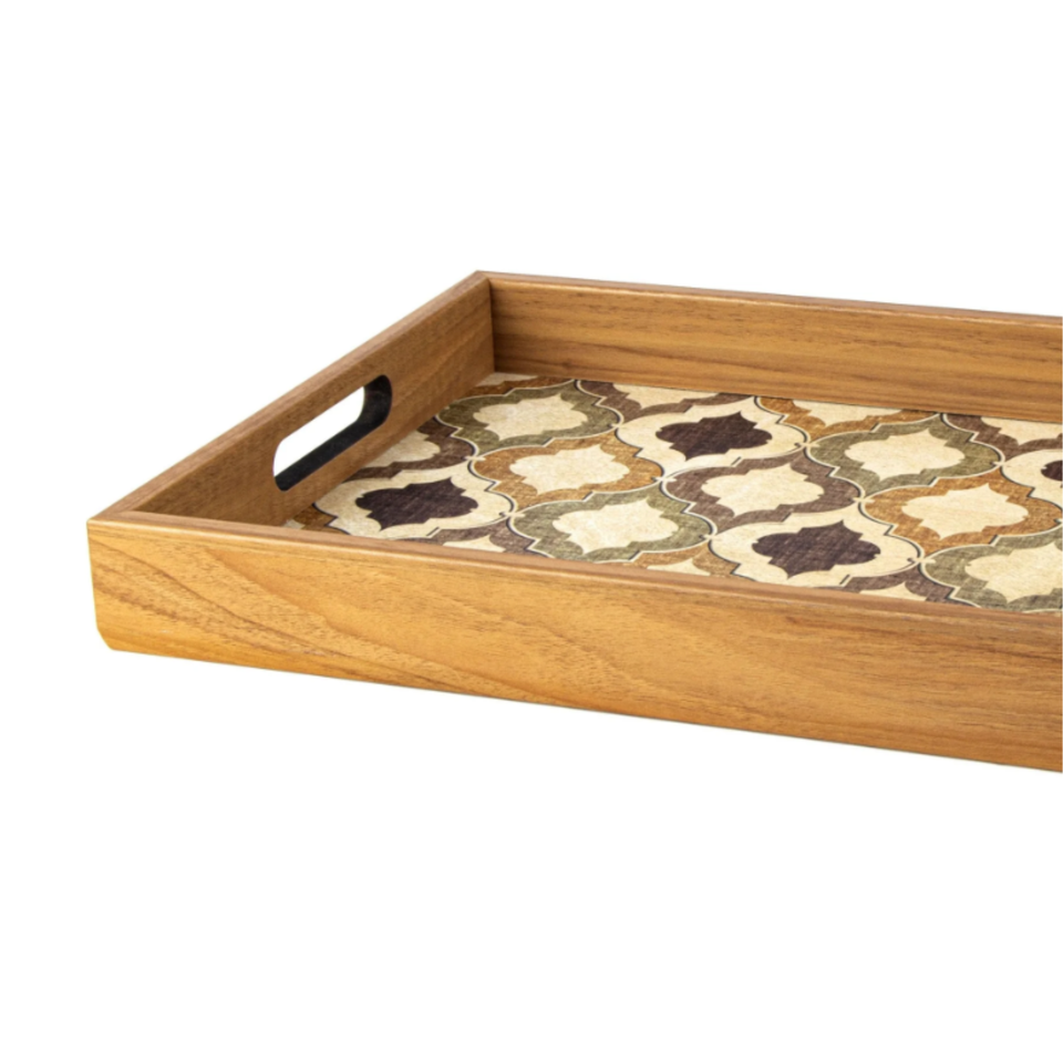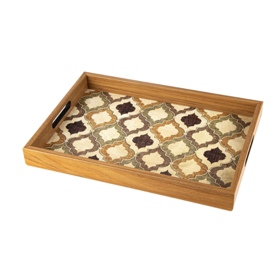 Classic Tableware Pattern Printed Wooden Tray Rectangle Wood Tray Organizer Display Gift Set Wholesale Cheap Price From Vietnam