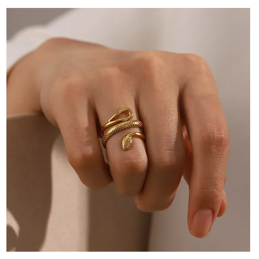 Anneaux d'ouverture de conception de serpent de texture classique de qualité supérieure plaqués or et argent 18K en acier inoxydable 304