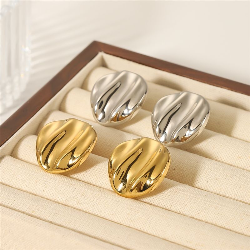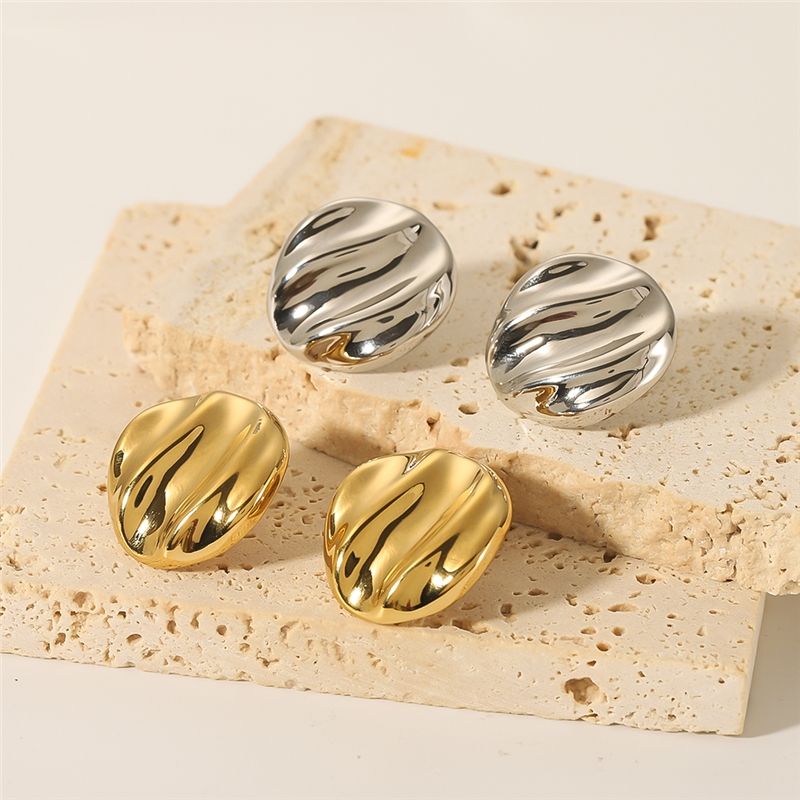 Boucles d'oreilles clous classiques en acier titane plaqué sous vide, texture lave ronde et incurvée, bijoux de mode pour femmes