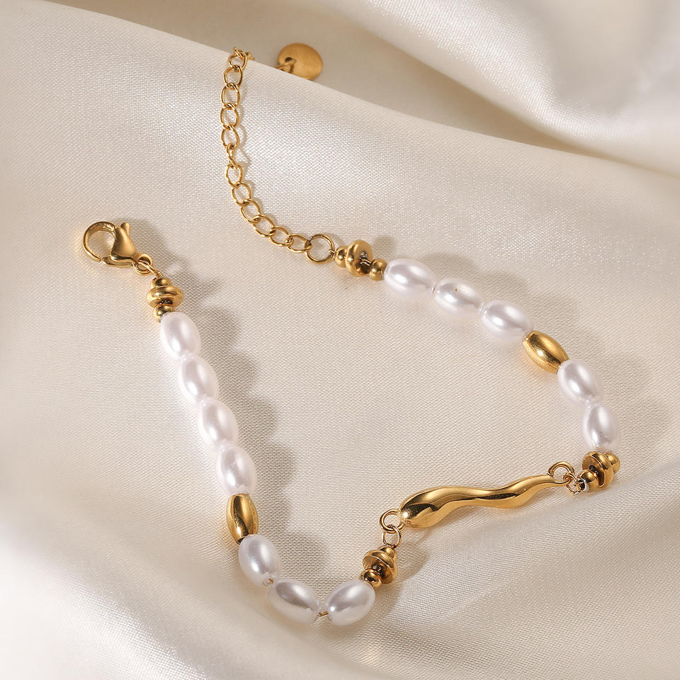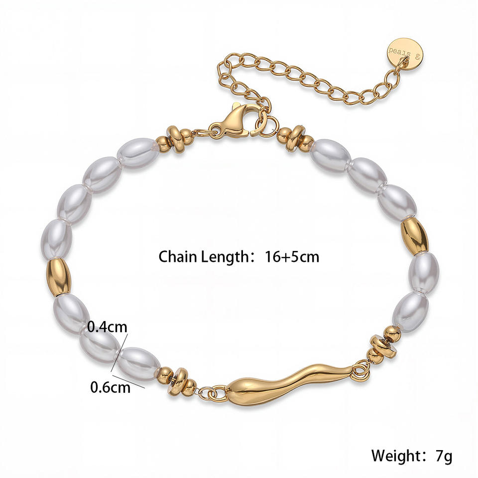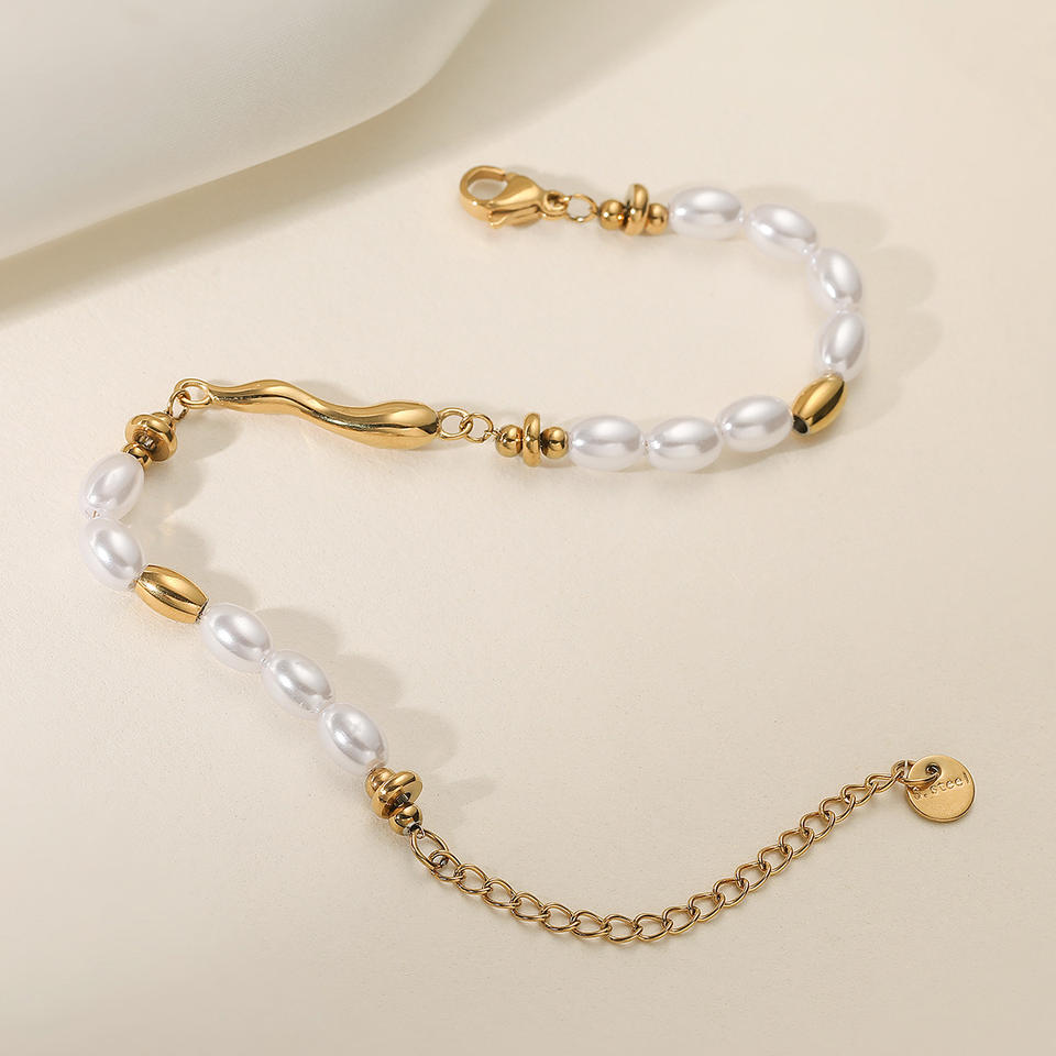 Bracelet classique tendance en imitation perle, chaîne et maillons géométriques, plaqué or 18 carats, acier inoxydable, bijoux cadeau pour femme