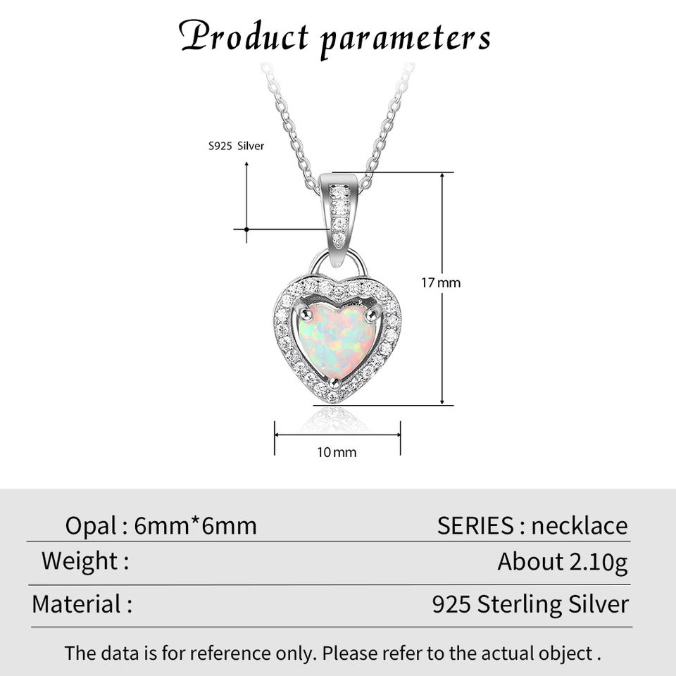 Collier pendentif en argent sterling S925 plaqué rhodium tendance classique avec opale en forme de cœur sertie à griffes, chaîne claviculaire hypoallergénique, cadeau