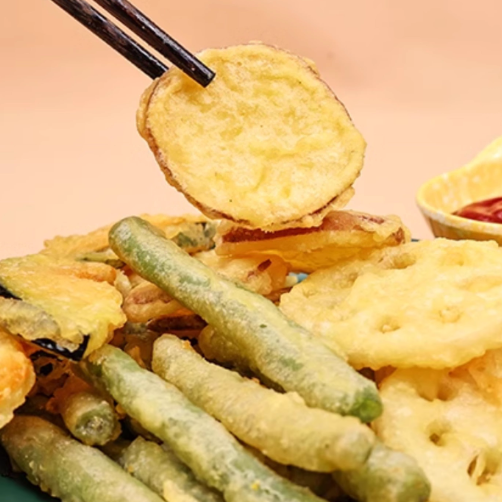Combinaison de tempura de légumes classiques (4 légumes différents), pré-frit congelé, cuit dans une friteuse à air