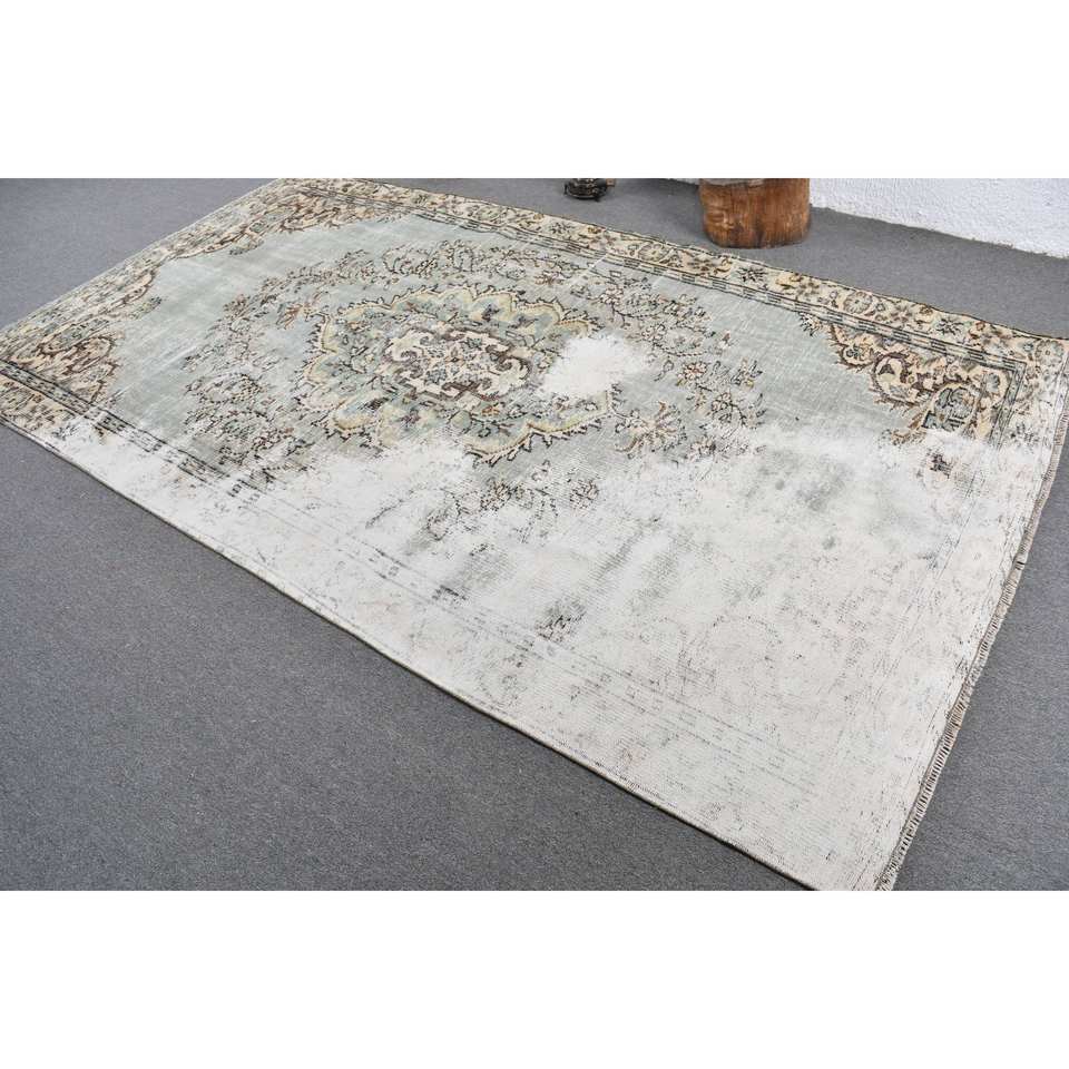 Tapis en laine turque Vintage classique 5.6 X 9.8ft vert Beige grande zone Rectangle pour couloir chambre Latex-Backed Patchwork abstrait