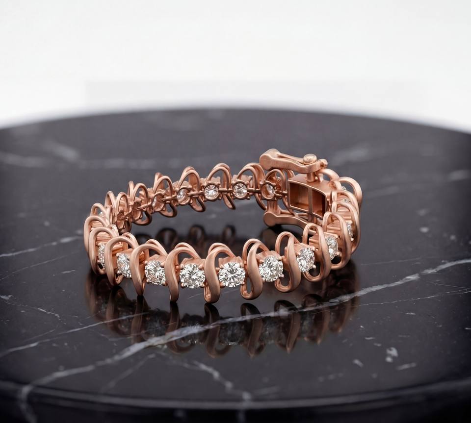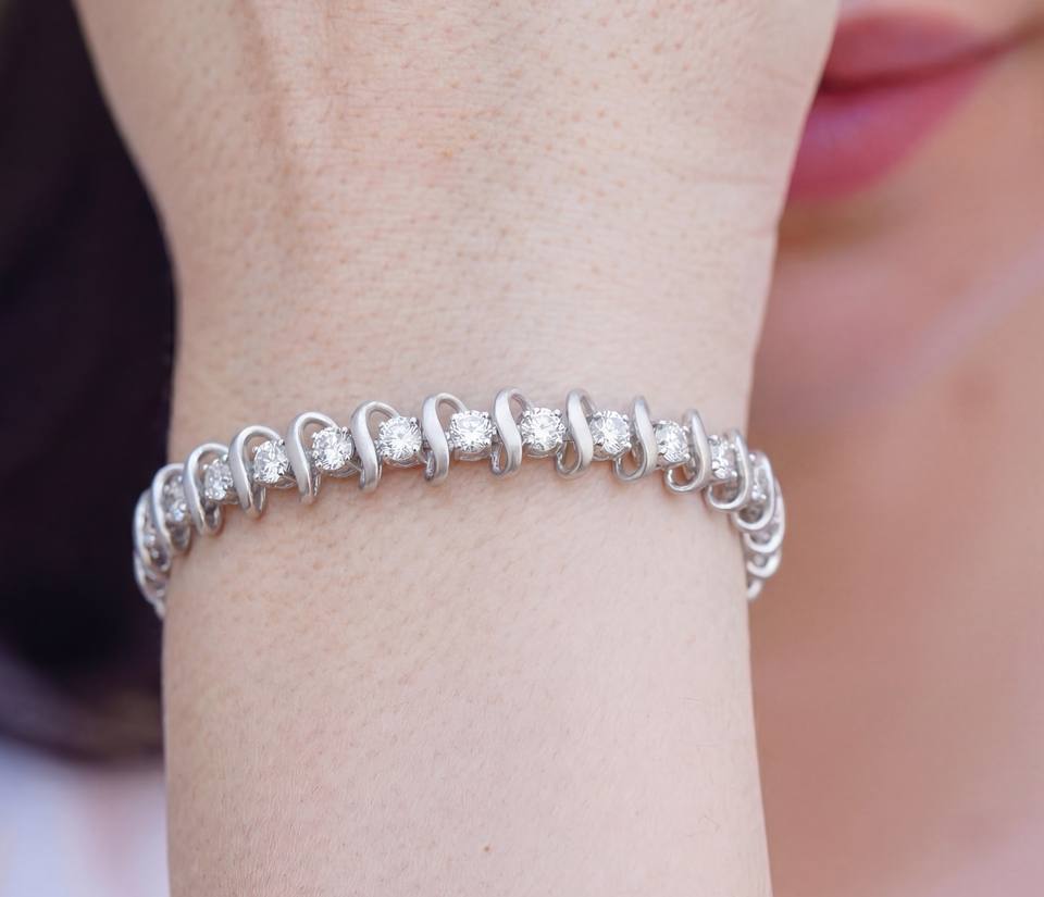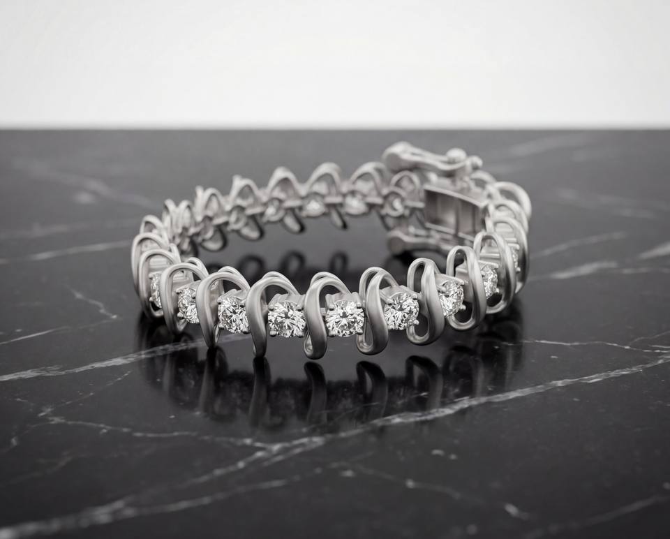 Bracelet en argent sterling classique avec diamant de laboratoire, motif vague argentée, plaqué argent, élégance moderne subtile