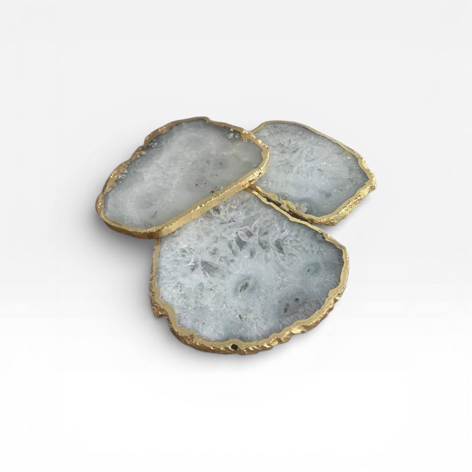 Sous-verres classiques en agate aspect marbre blanc avec bords dorés pour une décoration intérieure intemporelle et luxueuse