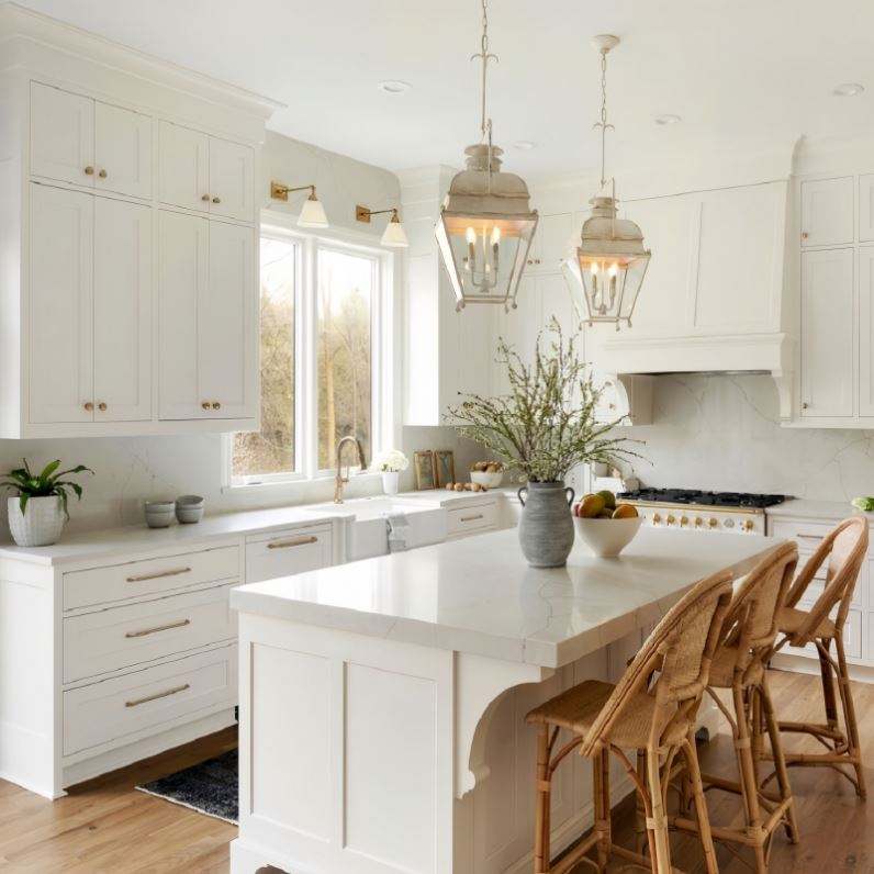 Armoires de cuisine de style minimaliste blanc classique élégant chic entièrement sur mesure par l'usine