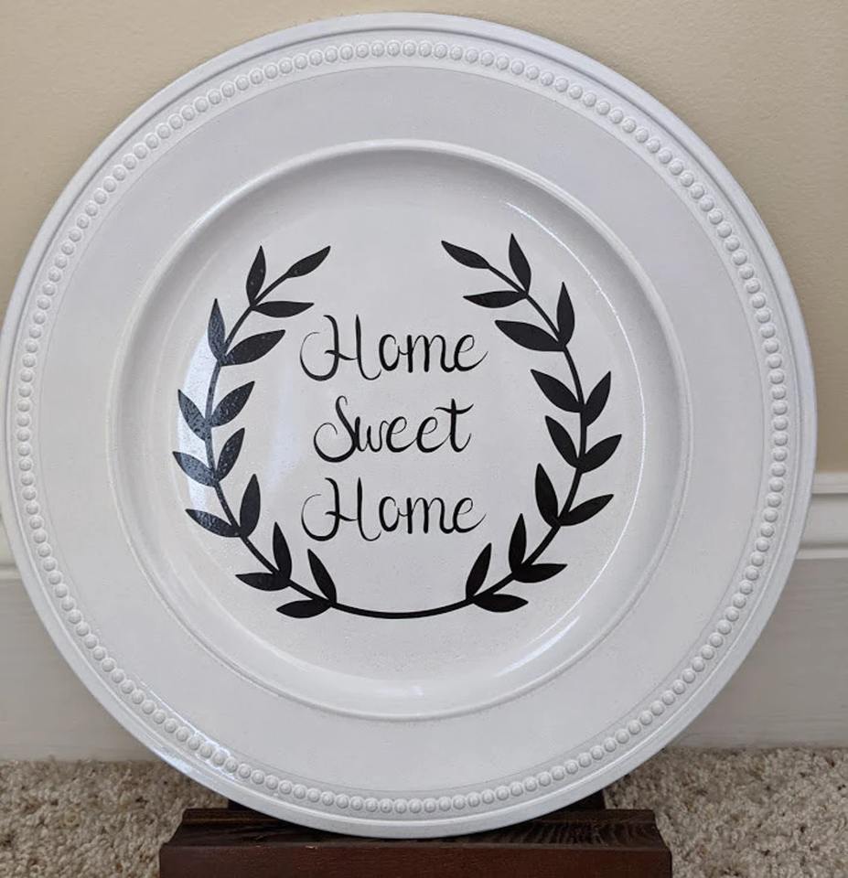 Élégante assiette de présentation enduite de poudre blanche avec un design de feuilles noires, parfaite pour la décoration de table et le service de nourriture