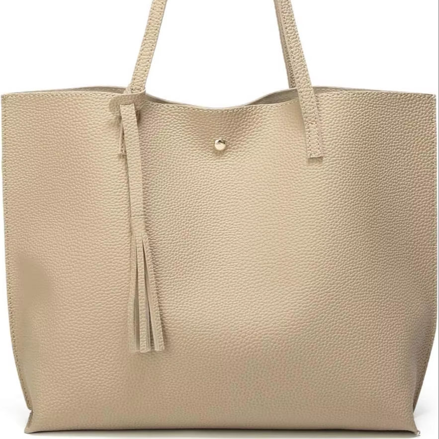 Fourre-tout classique à bandoulière pour femme en similicuir souple avec de grands compartiments et une touche élégante à glands