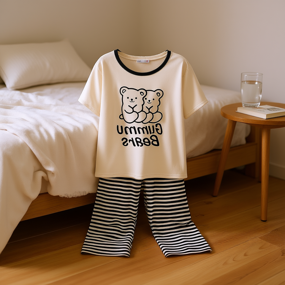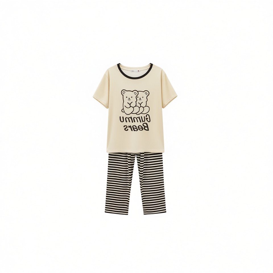 Classic Women's Three-Piece Casual Summer Sleepwear Comfortable Custom Drawstring with Cartoon for Daily Use and Relaxation