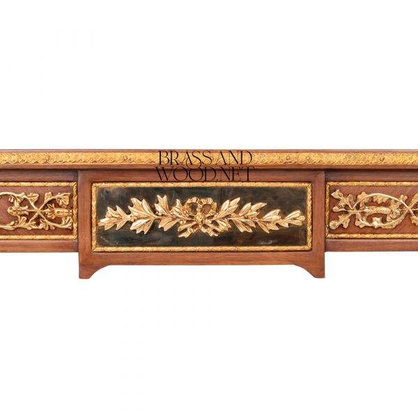 Classic Wooden Console Table with Chevron Veneer Top and Gold Bronze Carved Details French Luxury Design