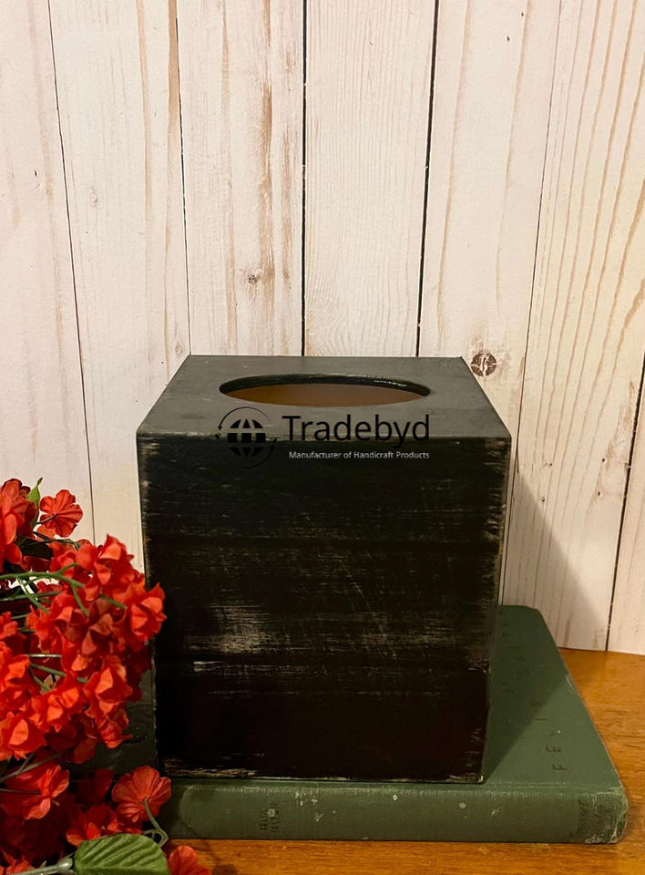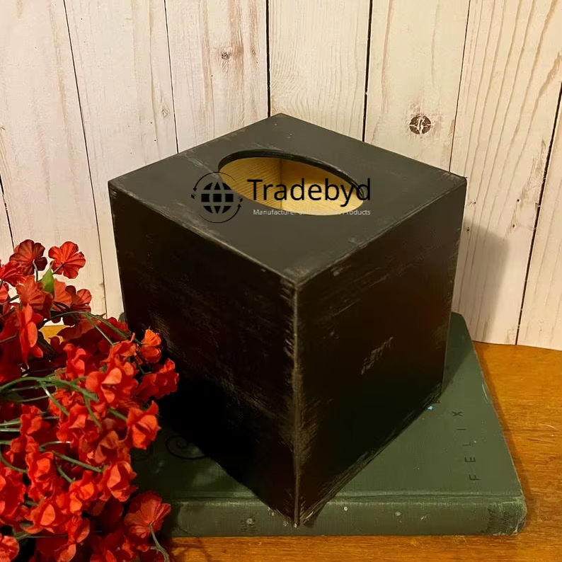 Boîte à mouchoirs en bois classique à motif floral gravé, fabrication de qualité supérieure, support pour la maison et le bureau Tradebyd