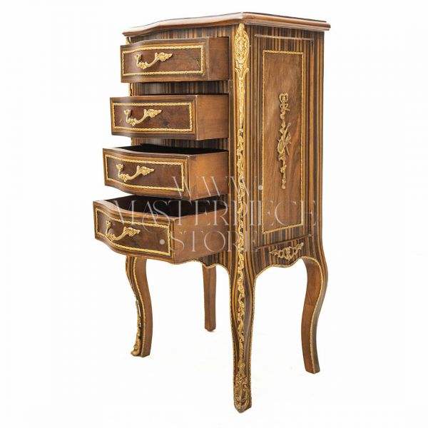 Classic Wooden Tall Bedside Chest with Vertical Drawers Gold Trim Handcrafted Luxury European Style Furniture