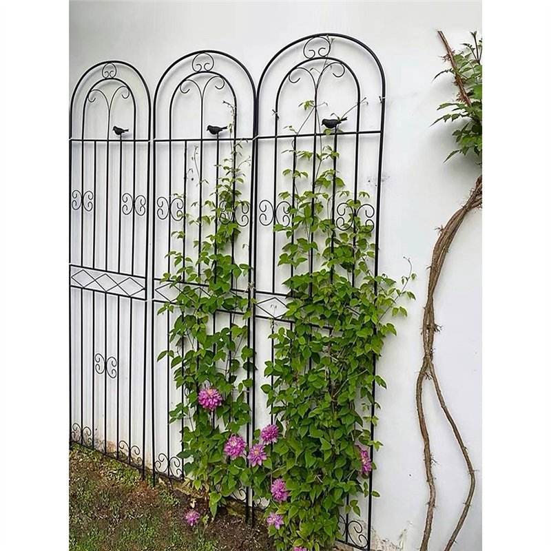 Classic Wrought Iron Trellis Panel For Climbing Plants Outdoor Garden Fence With Ornamental Design Painted Metal Support Frame