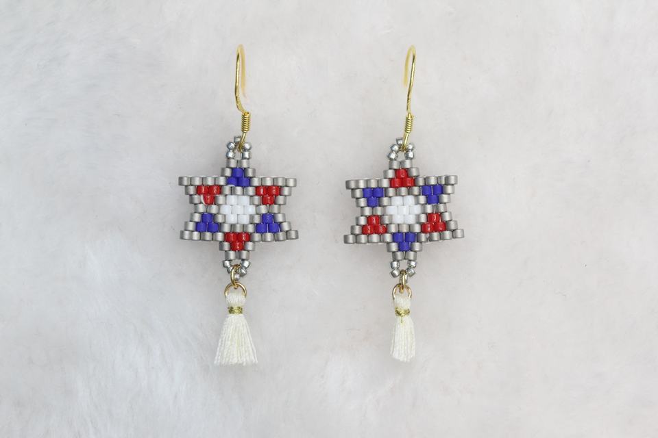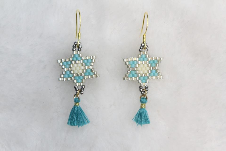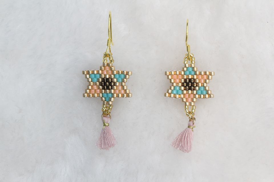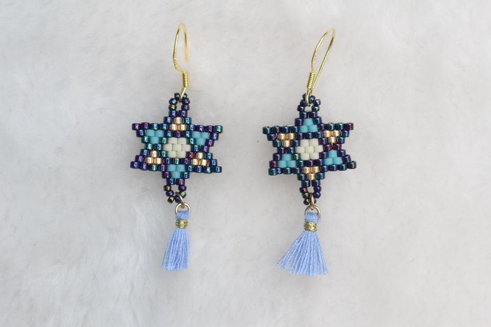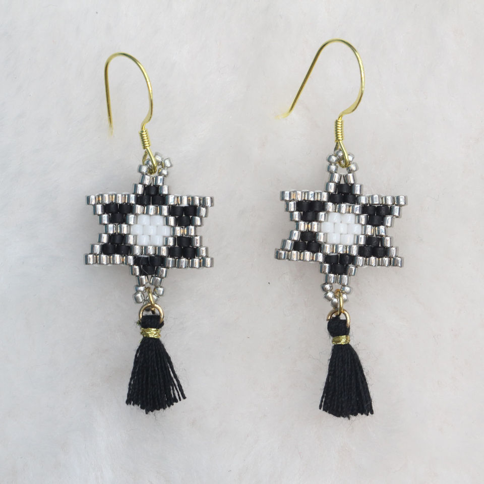 Boucles d'oreilles pendantes classiques et minimalistes à motif étoile hexagonale, tissées à la main en Miyuki, disponibles en plusieurs couleurs, personnalisables