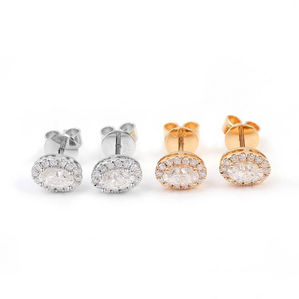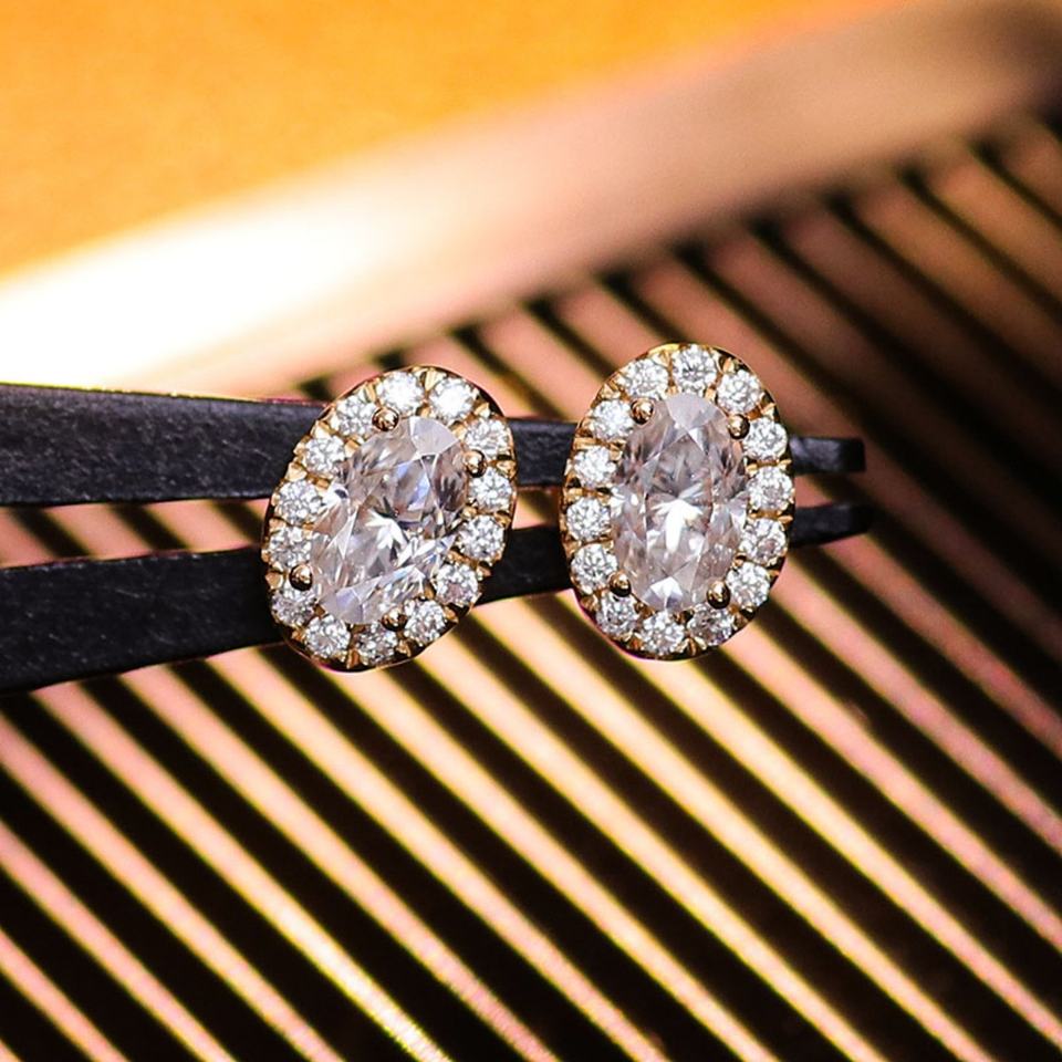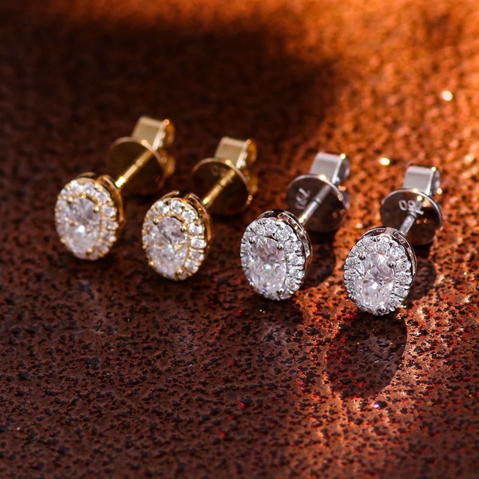 Boucles d'oreilles classiques en or véritable 18 carats, 14 carats, 10 carats, taille ovale, DEF VVS, moissanite, diamant, boucles d'oreilles personnalisées, bijoux fins pour femmes pour les fêtes