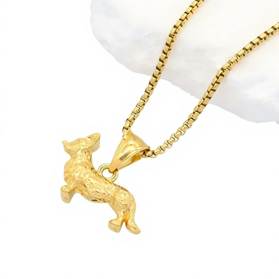 Pendentif animal classique pour Noël en acier inoxydable 304 avec finition plaquée or 18 carats et chaîne à maillons