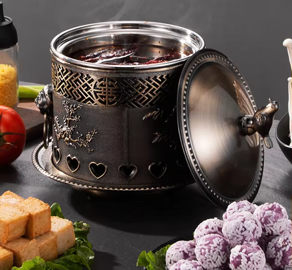 Tête d'oiseau classique Style chinois de haute qualité Hot Pot réservoir intérieur coque en acier inoxydable fonte d'aluminium