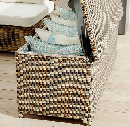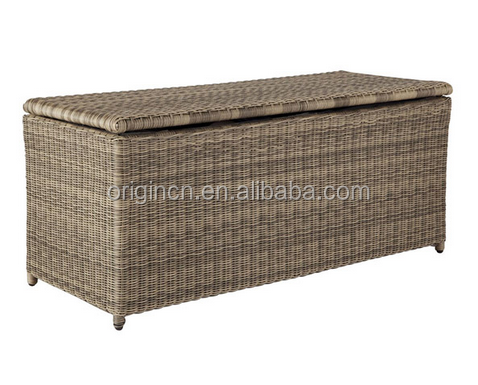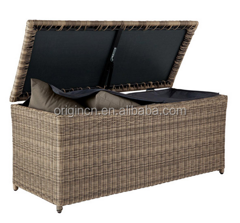 Boîte de rangement en rotin pour meubles de jardin d'extérieur imperméable au design classique, chaise longue avec coussin