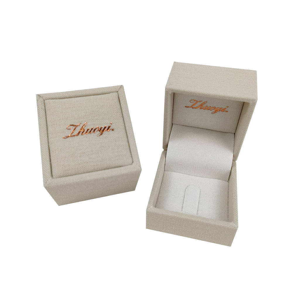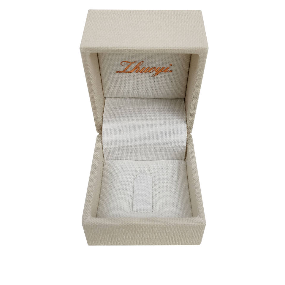 Boîte à bagues en lin de conception classique avec emballage de bijoux en velours beige