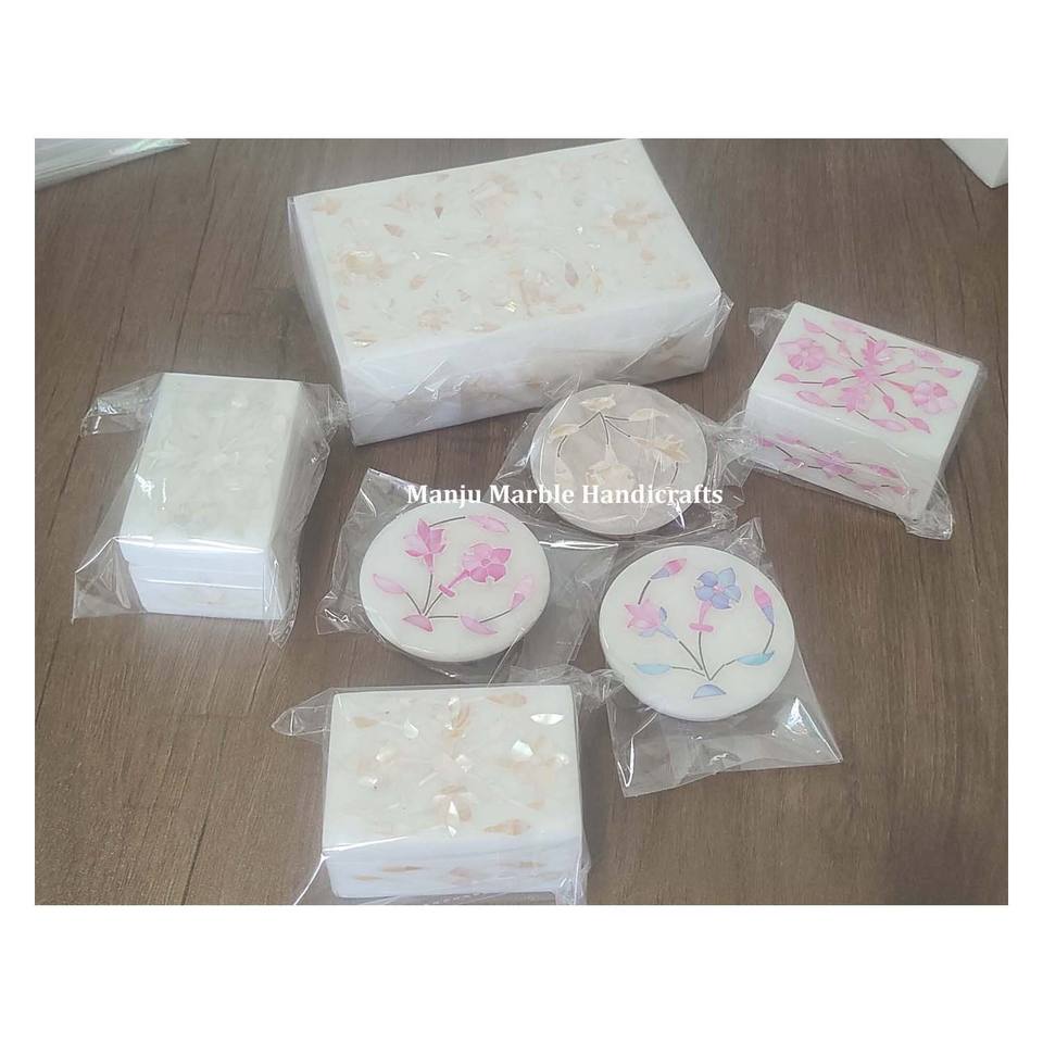 Boîte d'incrustation de marbre de produit de conception artisanale classique avec l'art floral de fleur de nacre pour la boîte de rangement de bijoux