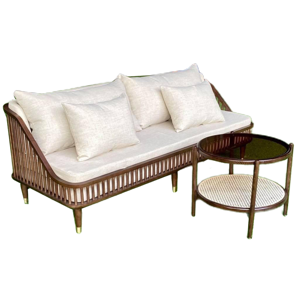 Ensemble de canapés classiques en semi-rattan et en bois du Vietnam