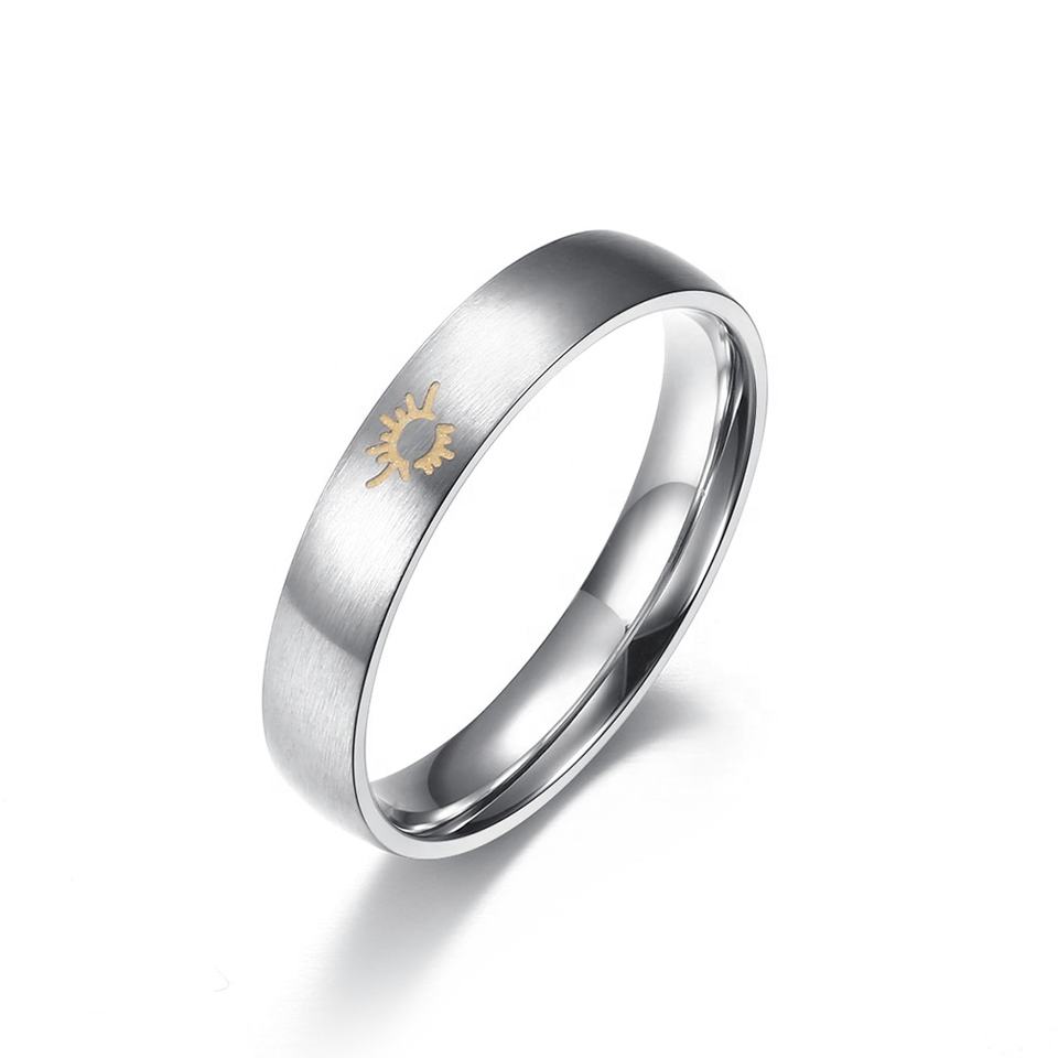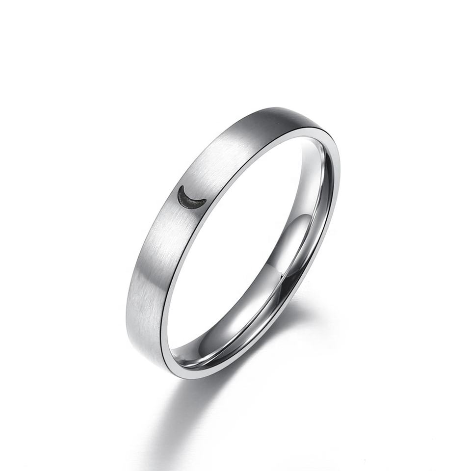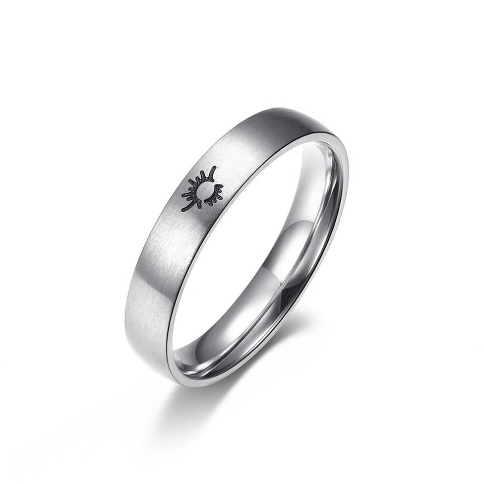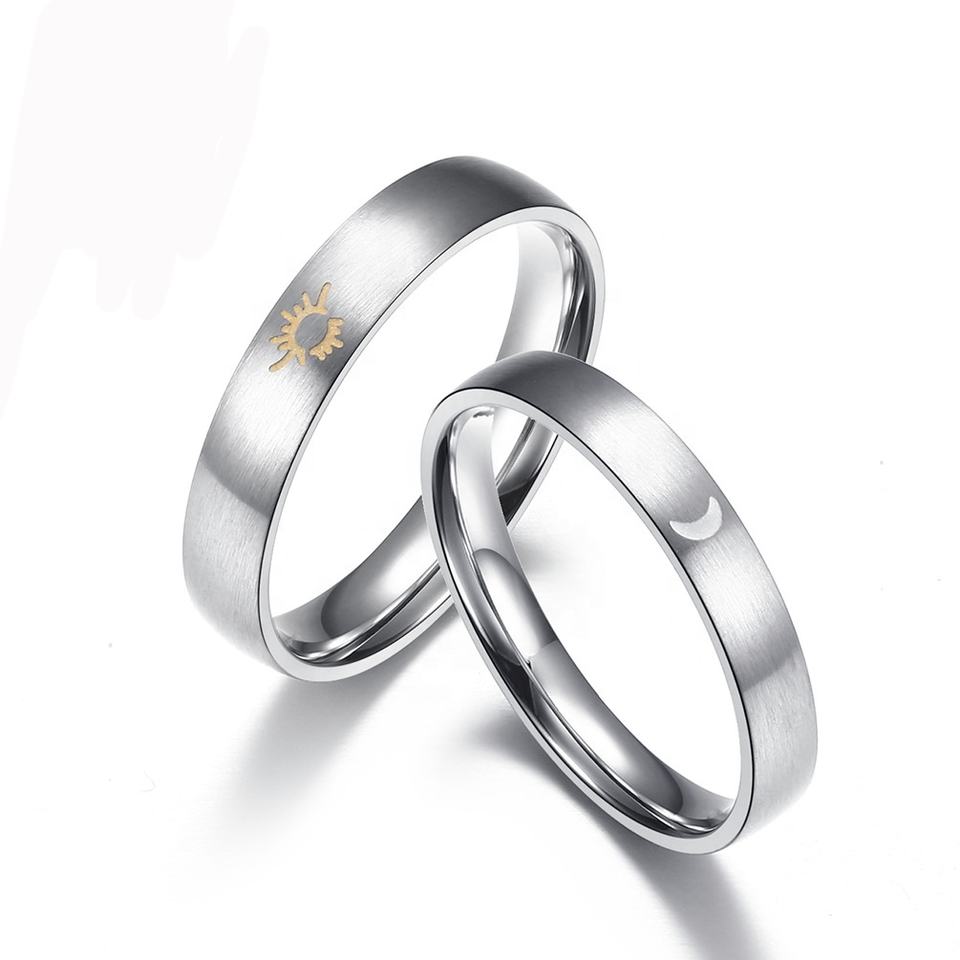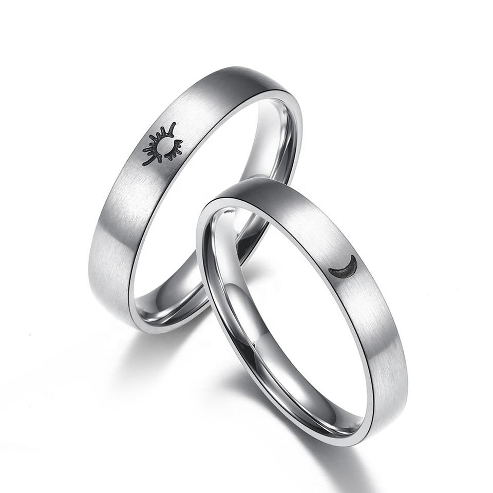 Classique argent acier inoxydable Simple lune soleil anneau Pari fille garçon mode étudiant Couple anneau