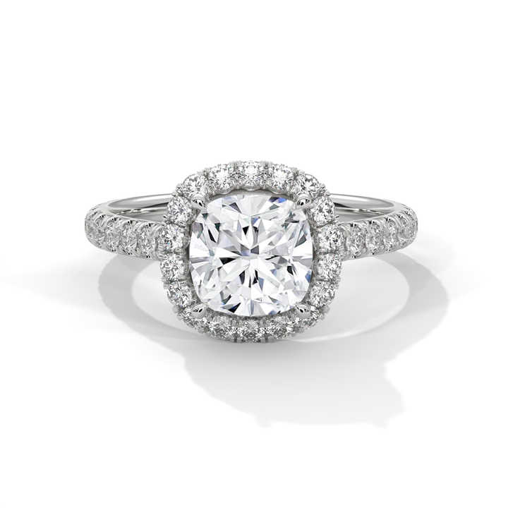 Bague de fiançailles de style classique en or blanc 14 carats avec diamant de laboratoire taille coussin