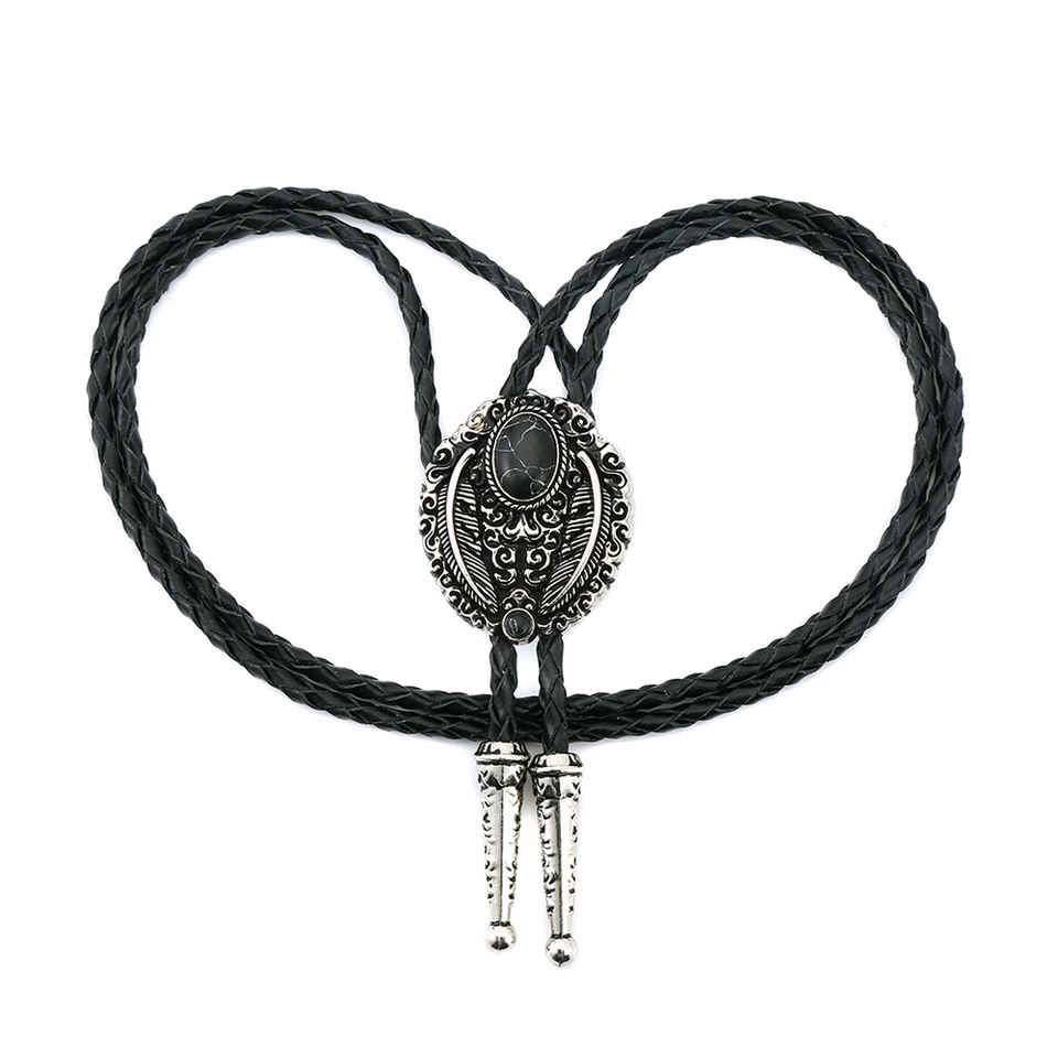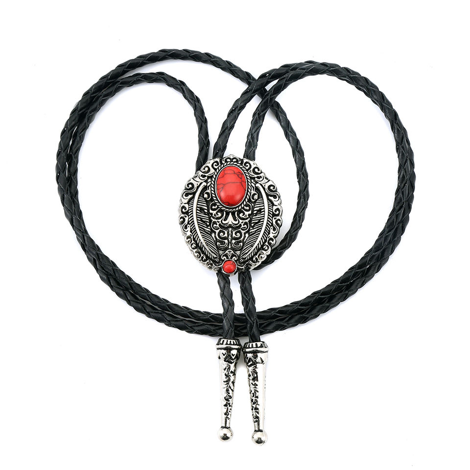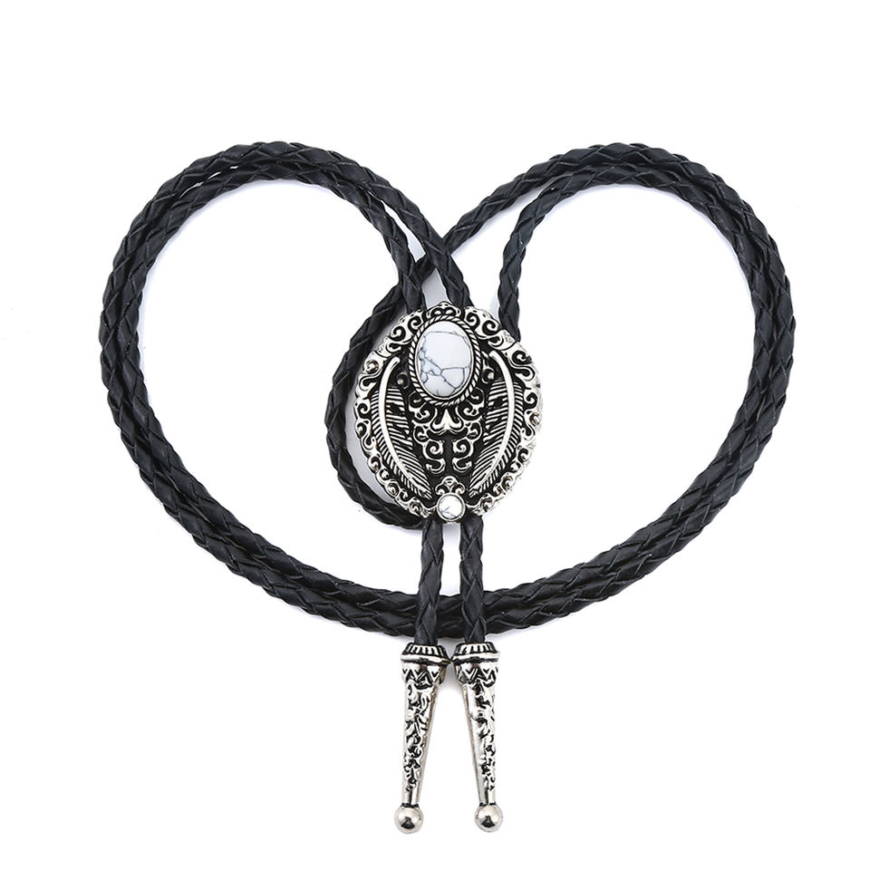 Classical Women's Leather Necktie Bolo Tie with Custom Artificial Gems Belt Buckles Supplies for Men