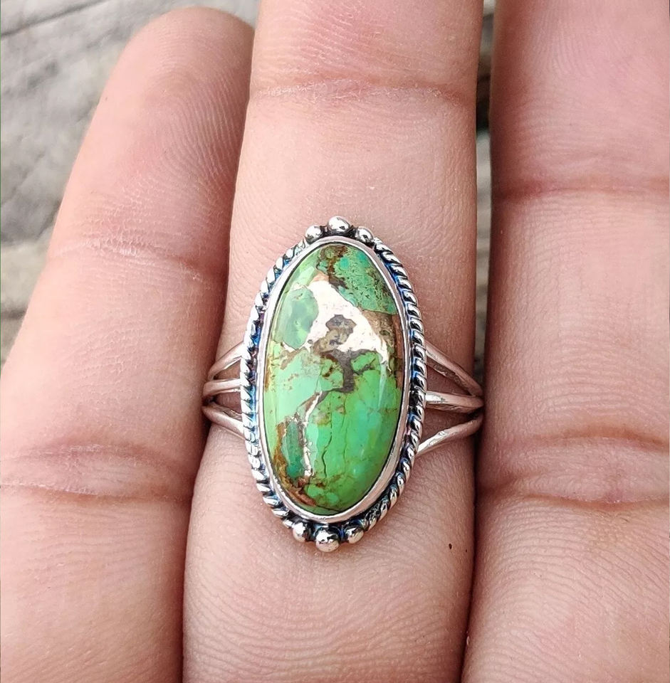 Classiques naturel vert cuivre Turquoise pierre précieuse bague en argent Sterling 925 10x14mm forme ovale bohème déclaration bijoux pour femmes