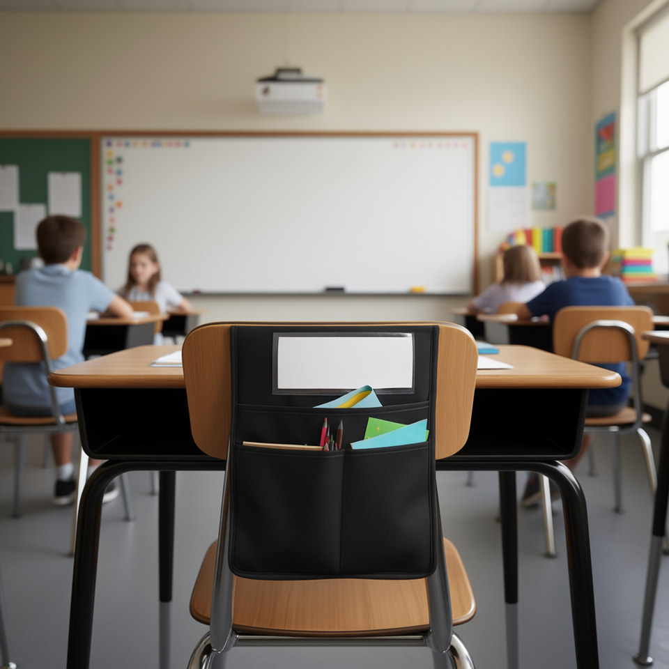 Pochettes pour chaises de classe avec porte-étiquette nominative pour usage scolaire, taille enfant, en tissu, design minimaliste