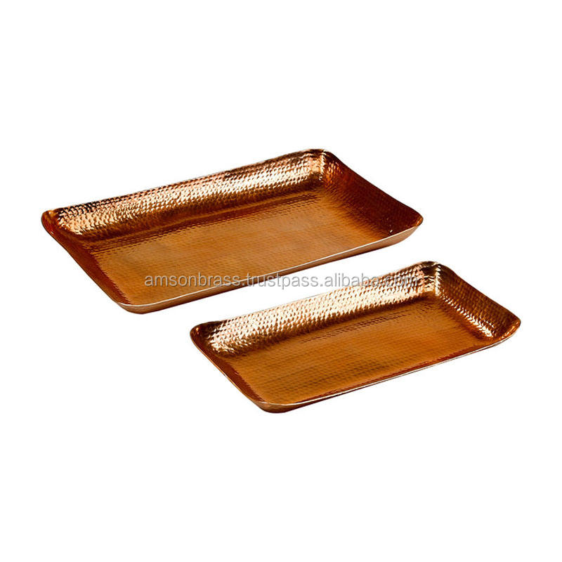 Design élégant plateau de table de service alimentaire en cuivre pur plateau de service rectangulaire en métal cuivre avec poignée