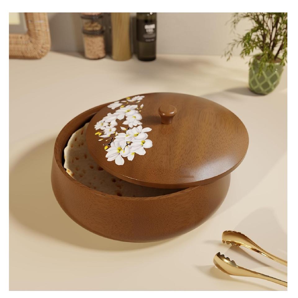 Boîte à chapati élégante en bois avec couvercle, conteneur de rangement pour roti, chauffe-plat pour casseroles et plats chauds, ustensile de cuisine et de service